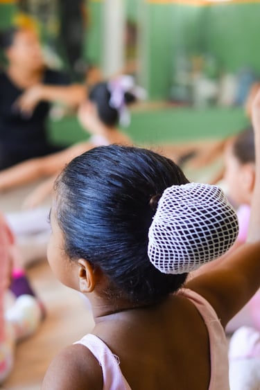 Aulas semanais para crianças, oficinas que vão para escolas em zona rural, promovendo arte e disciplina através do ballet.